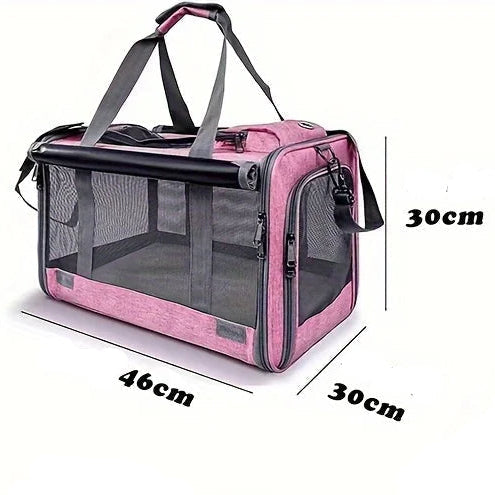 М'яка сумка-переноска для домашніх тварин, розроблена для комфорту, безпеки та легких подорожей. Ідеально підходить для маленьких собак або котів, ця легка сумка поєднує повітропроникні сітчасті панелі із затишним внутрішнім простором, допомагаючи вашому улюбленцю почуватися безпечно та спокійно, де б ви не були.